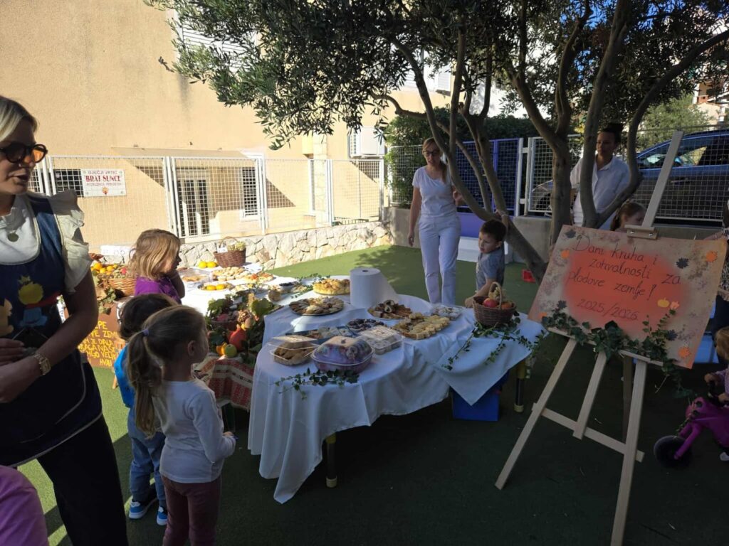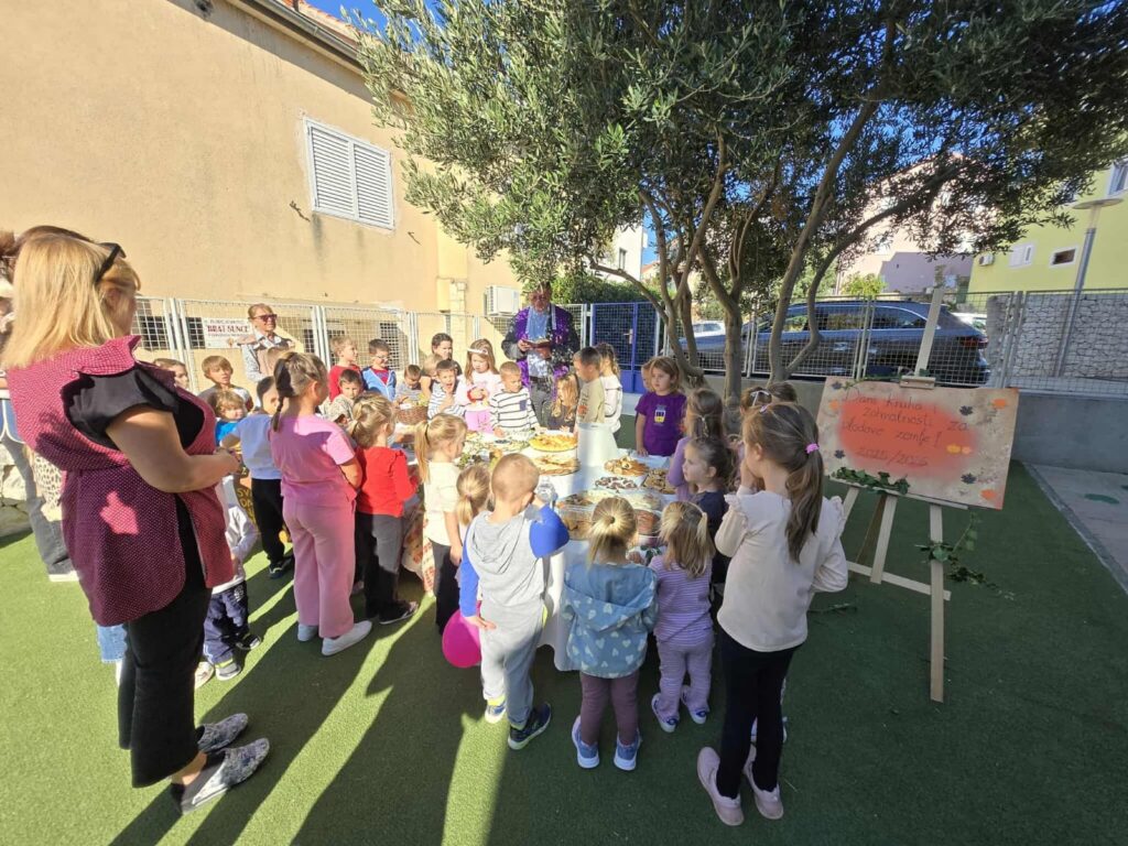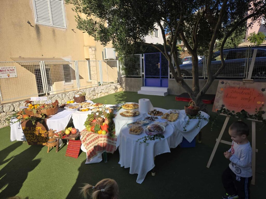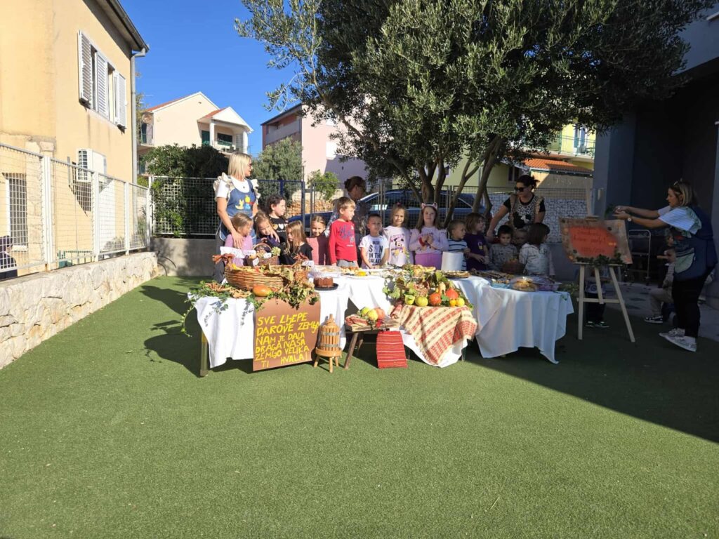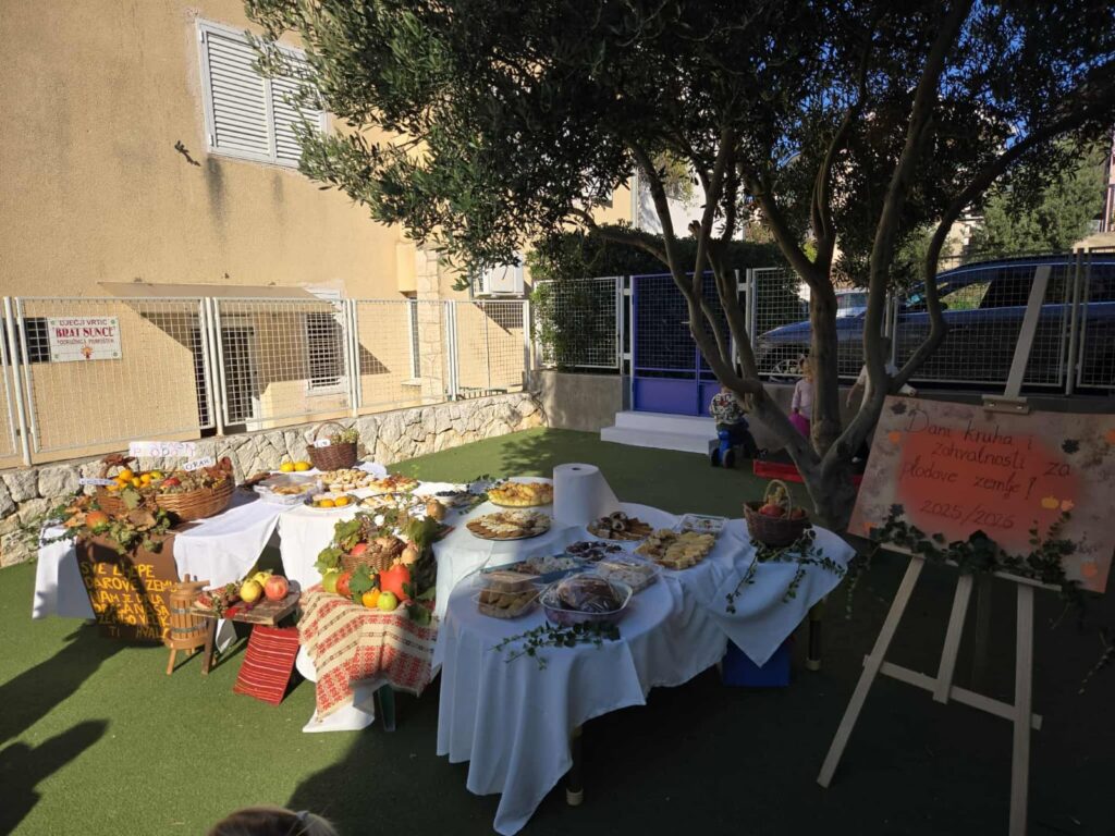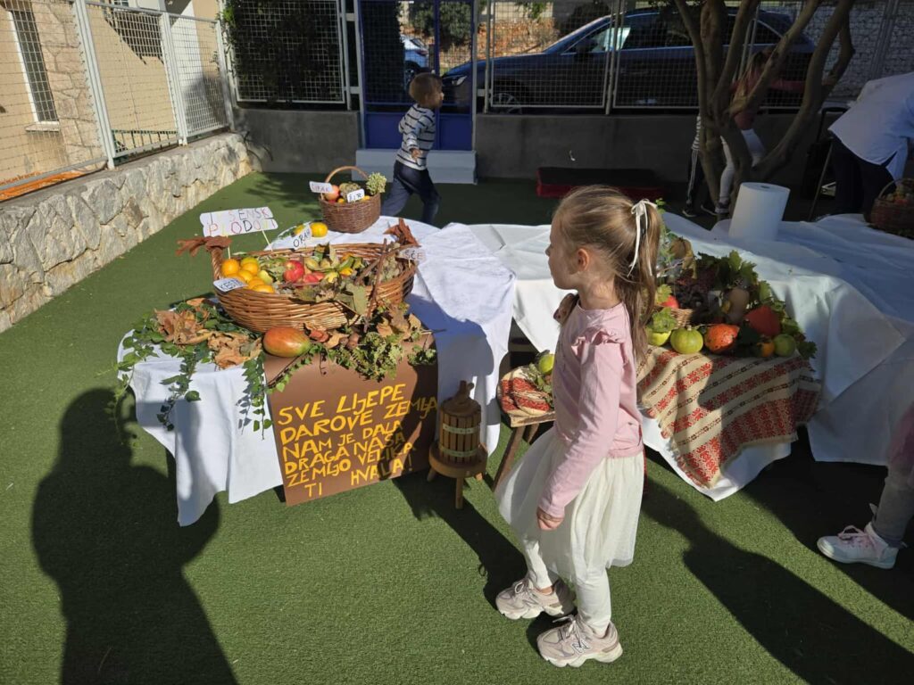 Djeca su s roditeljima izradili razna peciva, kolače, ubrali plodove voća i povrća iz svog vrta koje su odgojiteljice izložile na stolove, a velečasni Jurica Petković je blagoslovio sve plodove koji su bili pripremljeni. Iza blagoslova smo svi skupa degustirali izložene delicije.