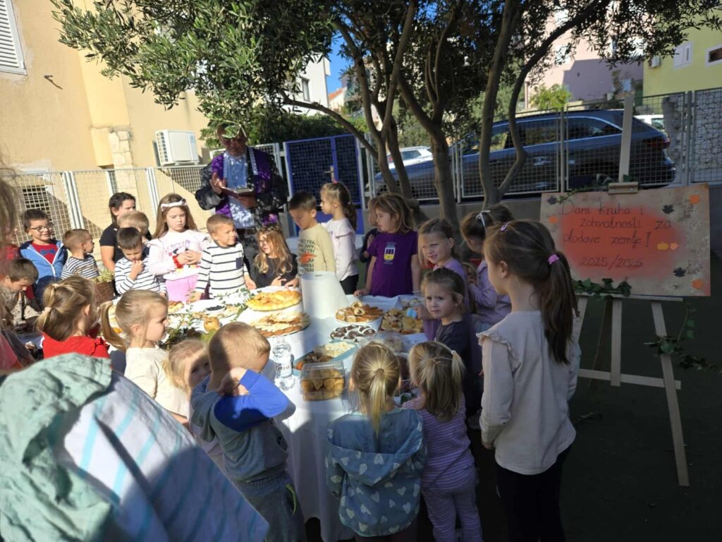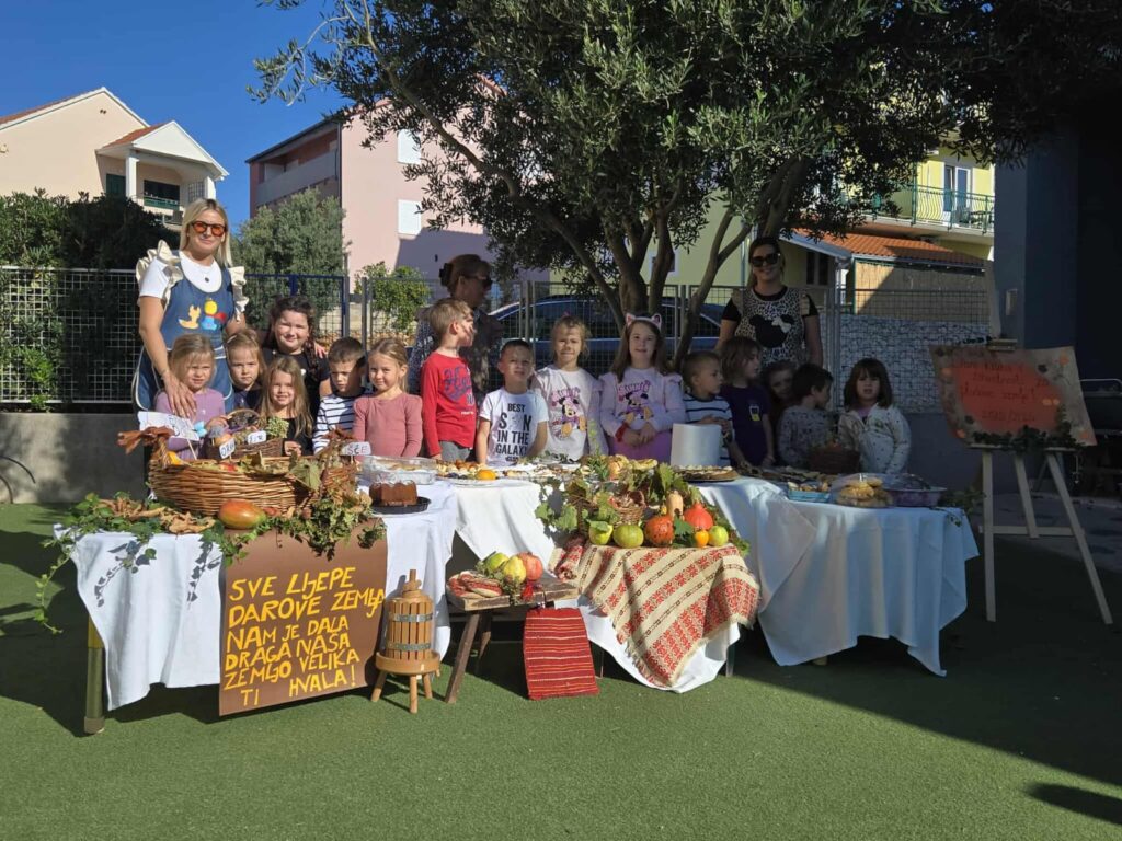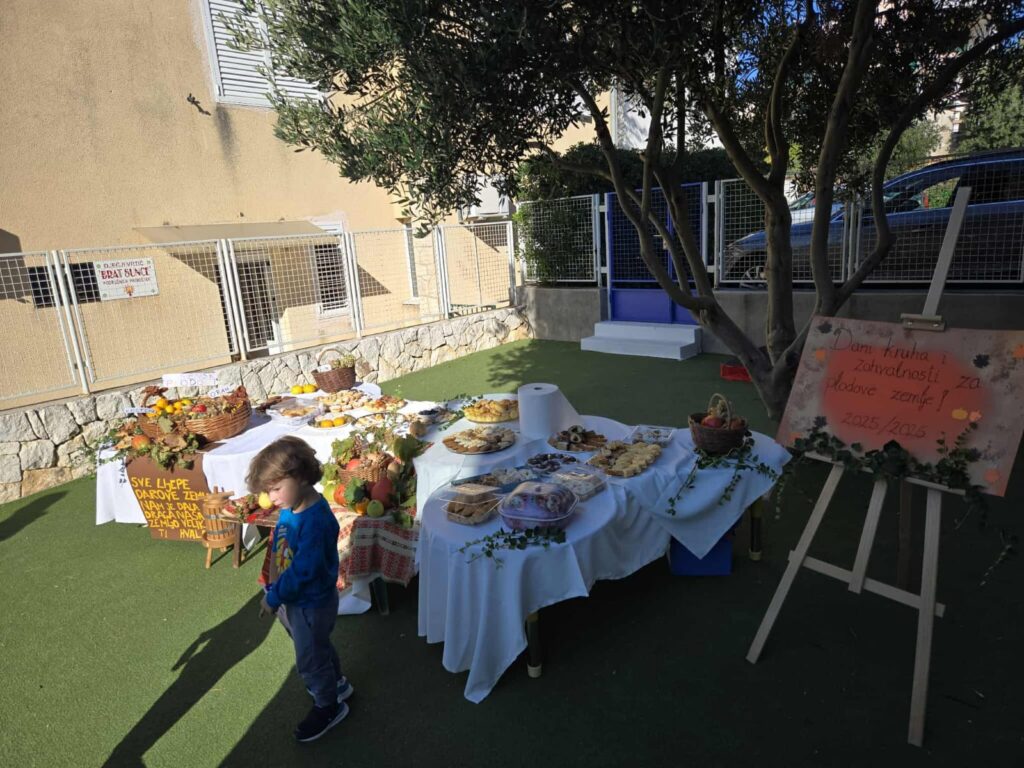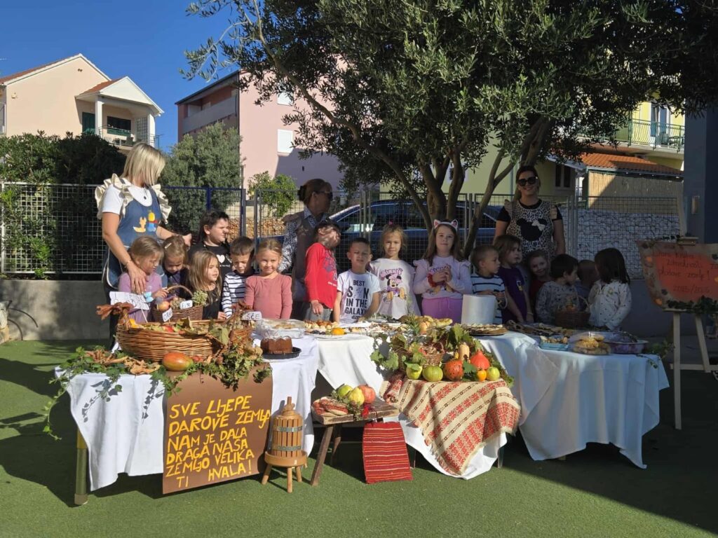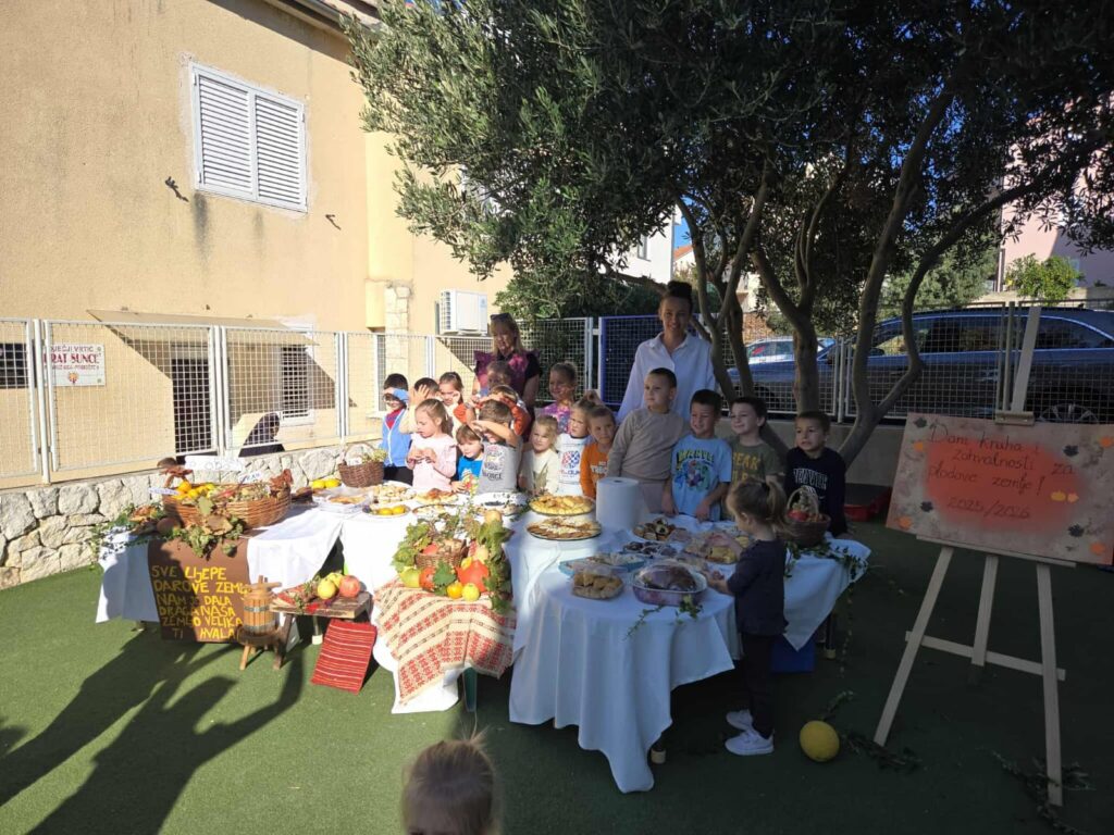 Djeca su s roditeljima izradili razna peciva, kolače, ubrali plodove voća i povrća iz svog vrta koje su odgojiteljice izložile na stolove, a velečasni Jurica Petković je blagoslovio sve plodove koji su bili pripremljeni. Iza blagoslova smo svi skupa degustirali izložene delicije.